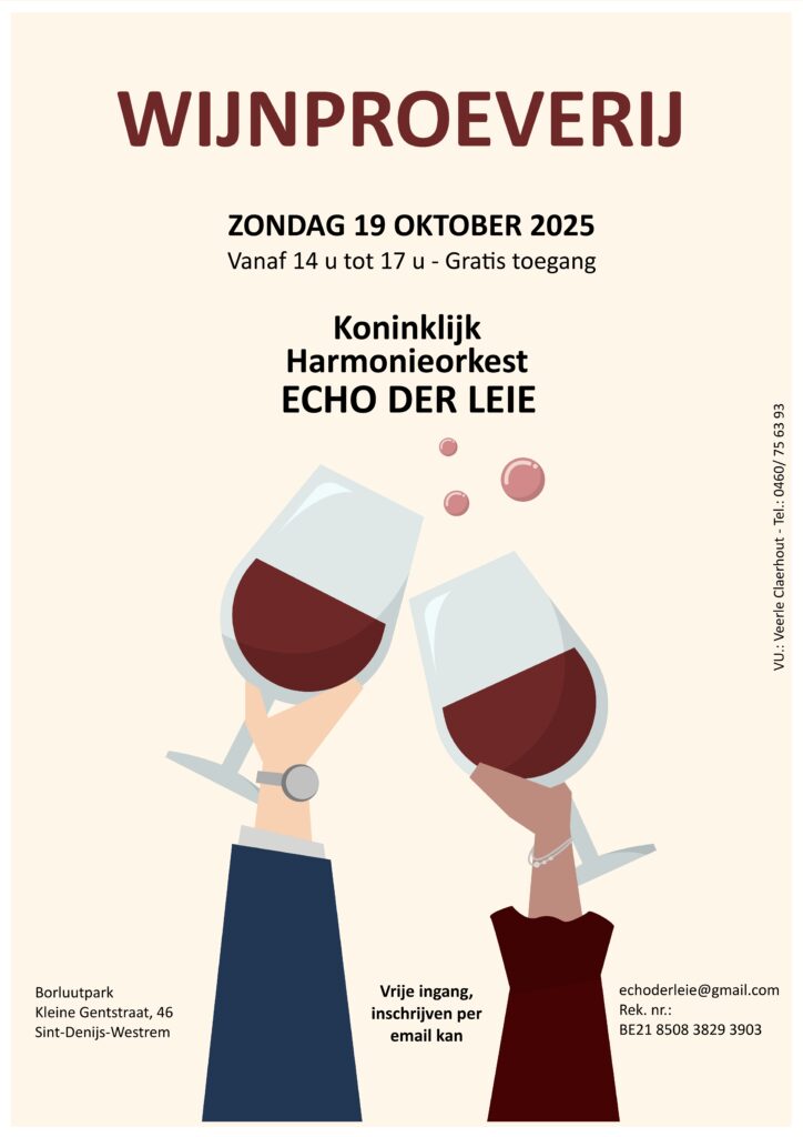 Tijdens het Kermisweekend ontvangt onze harmonie jullie graag voor een wijndegustatie. Deze vindt plaats in de voormalige koetshuizen van het Borluutkasteel, in het Borluutpark.